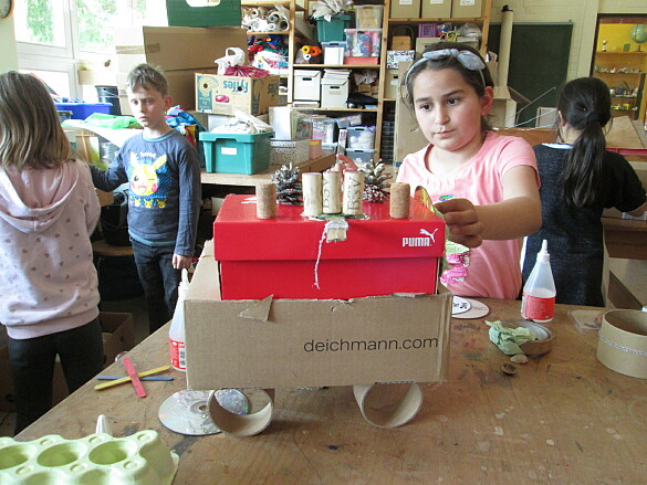 Zum Thema "Ein Haus entsteht" wurden auch Bau-Fahrzeuge behandelt.